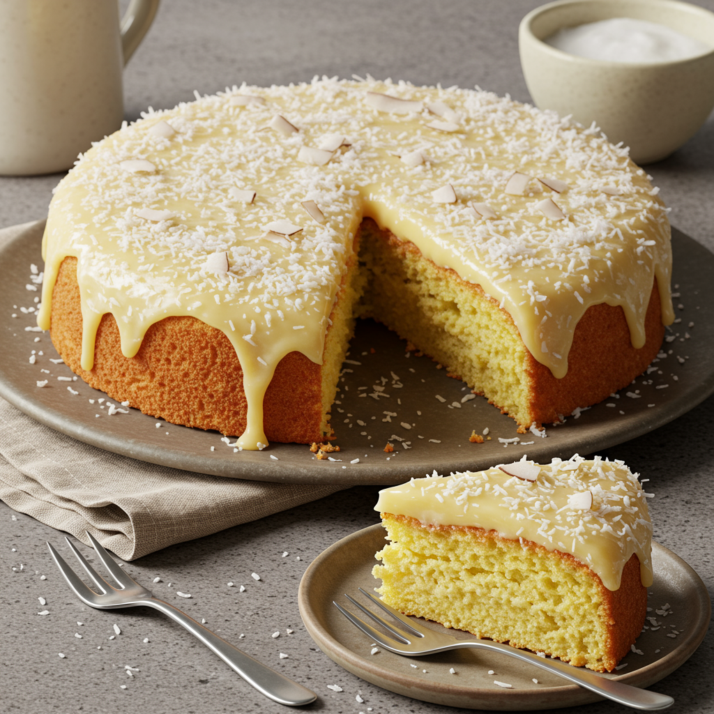 Delicioso bolo de coco molhadinho, com aquela textura que derrete na boca e um sabor que lembra a praia, Esta receita é a combinação perfeita de simplicidade e sabor, resultando em um bolo incrivelmente fofo e com uma cobertura cremosa que o deixa irresistível.