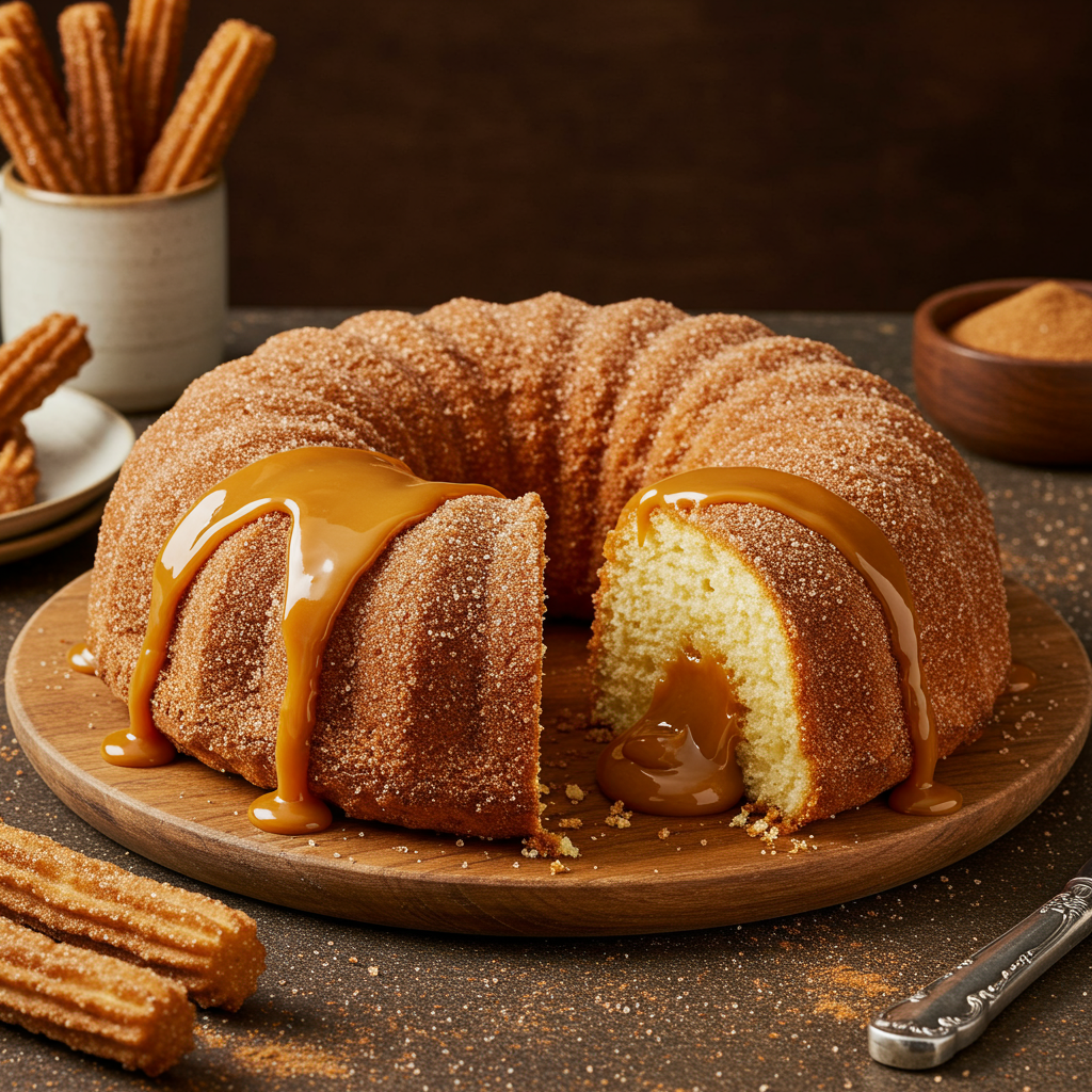 - Servir Quentinho: O bolo de churros fica ainda mais gostoso se for servido levemente aquecido, pois o doce de leite fica ainda mais cremoso.