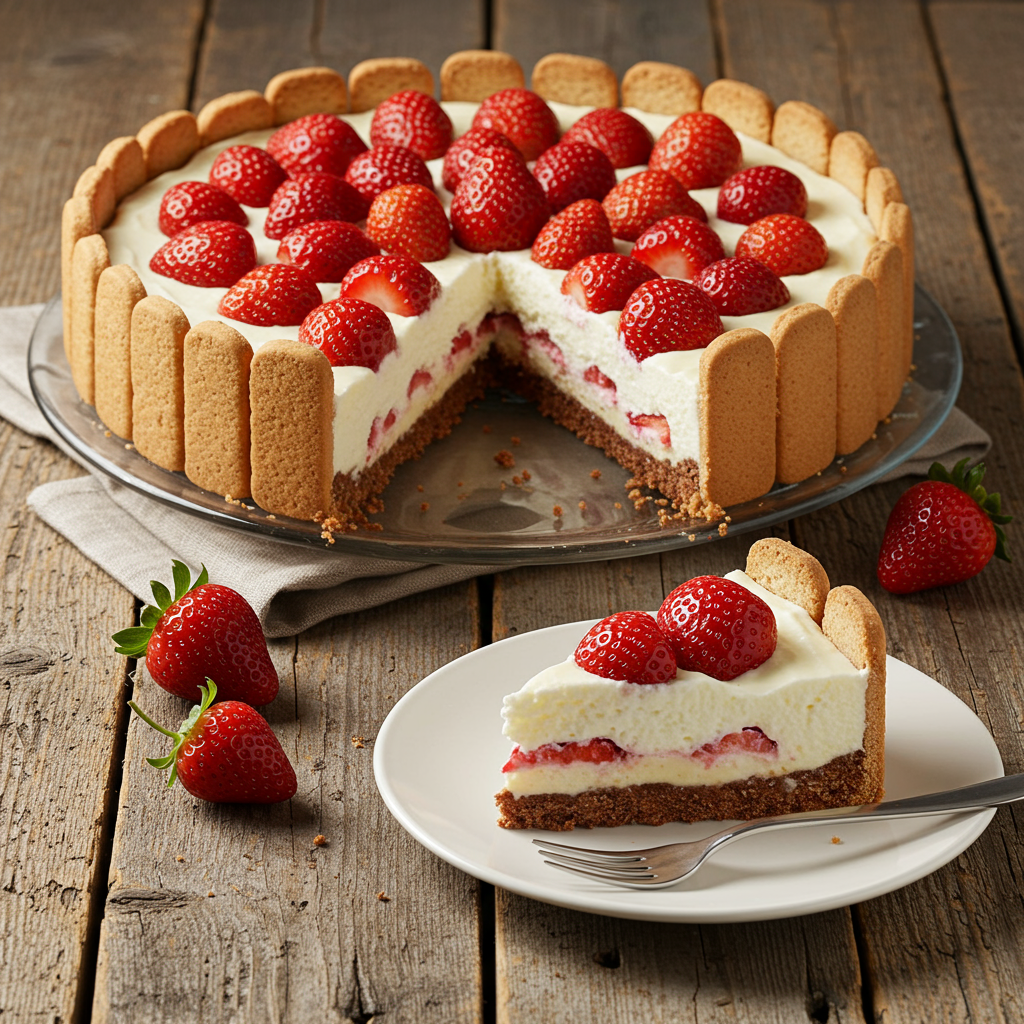 Uma deliciosa variação da torta clássica, com um recheio suave de creme e morango, coberto com uma ganache de chocolate branco e decorado com morangos frescos.